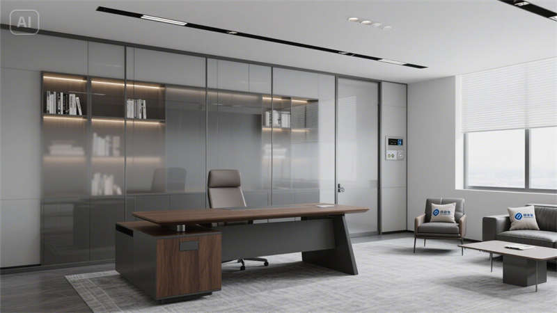 開放式辦公區以可升降桌、協作島與高吧臺休憩區構建靈活場景,穿孔吸音天花與淺木紋PVC地板弱化工業冷感;獨立辦公室通過灰玻隔斷與胡桃木家具平衡隱私與通透感。公共支持區、標準會議室等空間,均以啞光金屬、淺灰肌理漆等統一材質串聯,配合3500K色溫燈光,形成連貫的視覺呼吸節奏。