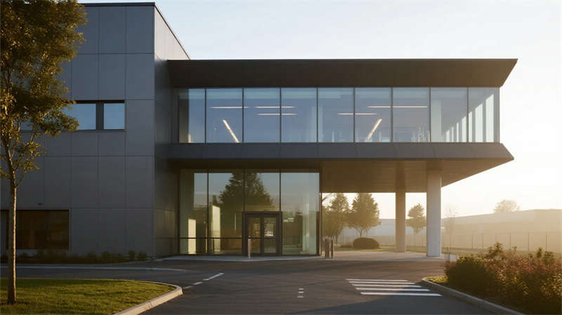 本設計以現代簡約語言重構廠房美學。設計摒棄冗余裝飾,聚焦材料本質——銀灰金屬立面與通透玻璃幕墻形成虛實對比,利落線條切割出幾何體塊,在光影流動中彰顯力量感。廠區布局強調功能與自然的共生:屋頂光伏板陣列呼應綠色生產理念,嵌入式空中花園與竹林連廊為鋼鐵空間注入呼吸感,員工休憩區模糊了工業與生活的邊界。
