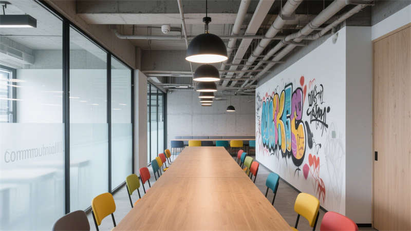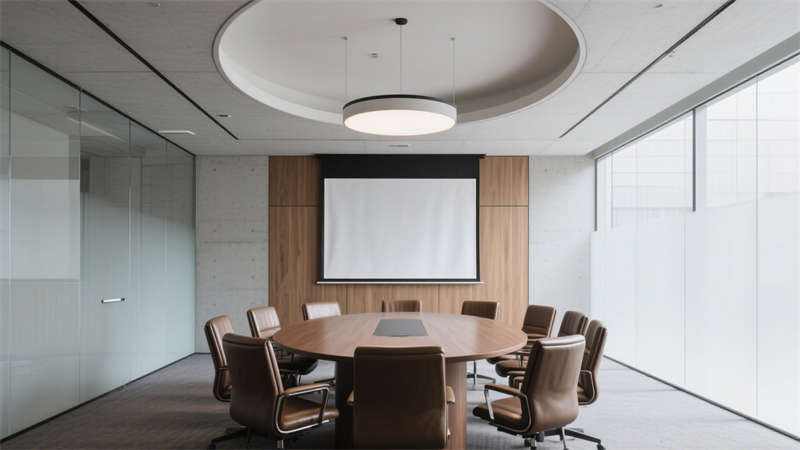 會議室設計兼顧功能性與互動性,靈活的桌椅擺放滿足不同會議形式需求,簡潔的墻面裝飾與適宜的燈光,營造出專注、高效的交流氛圍。休閑區(qū)域則增添溫馨感,通過柔軟的家具、溫和的色彩與綠植點綴,為辦公人員提供放松身心的空間,緩解工作壓力。?