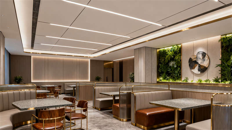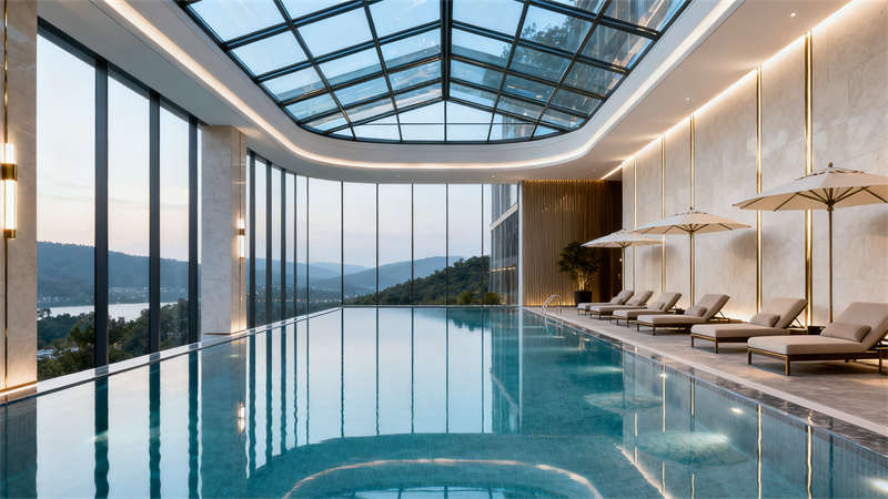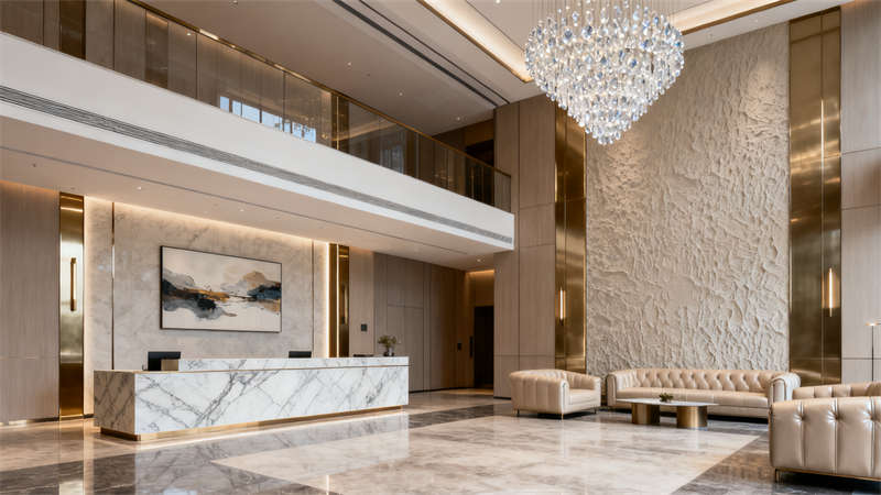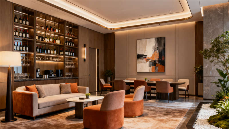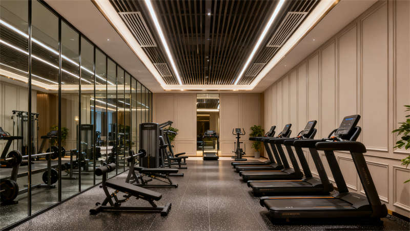 室內空間裝修圍繞不同功能場景精準發力。大堂以開闊通透為基調,地面選用質感石材鋪設,墻面搭配柔和的肌理材質與藝術裝飾,接待區設計簡約大氣,搭配舒適的休憩座椅,營造出溫馨且有格調的迎賓空間;行政套房注重私密性與舒適度,裝修上采用柔和的色彩搭配,床頭背景墻融入精致紋樣,家具選用簡約實用款式,衛生間做干濕分離設計,搭配品質衛浴設施,讓入住體驗更顯愜意;全日制餐廳裝修兼顧實用性與氛圍營造,開放式布局搭配半私密卡座,餐桌椅選用耐用且美觀的款式,墻面點綴綠植與藝術掛畫,燈光采用暖色調,打造出適合用餐的輕松環境;多功能宴會廳以靈活實用為核心,裝修上采用簡潔的吊頂設計與可調節燈光系統,墻面選用大氣的裝飾材質,地面鋪設耐磨易清潔的材料,滿足不同活動需求;行政酒廊裝修凸顯雅致感,柔和的燈光、舒適的沙發搭配質感裝飾,為賓客提供放松交流的空間;健身中心裝修注重功能性,通透的玻璃隔斷、專業的運動地板搭配齊全的健身設備,營造活力氛圍;室內泳池裝修以靜謐舒適為主,無邊際設計搭配自然光線引入,池邊布置休閑躺椅,讓賓客盡享放松時刻。