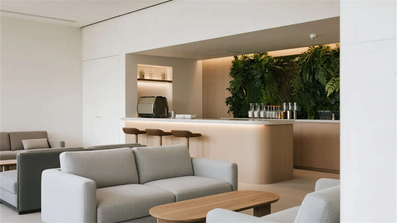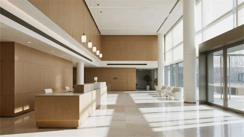本辦公樓設計以現代簡約美學為基調,營造出寧靜而高效的商務環境。建筑外觀采用純凈的玻璃幕墻與利落線條,在光影交錯中呈現輕盈通透的視覺體驗;步入大廳,淺色石材與溫潤木質元素相融,挑高空間與落地窗引入豐沛自然光,傳遞開放包容的氛圍。內部功能區布局注重人性化:開放式辦公區以靈活隔斷促進協作,綠植點綴為空間注入生機;簡約會議室配備智能設施,滿足高效溝通需求。員工休憩區與樓頂花園成為亮點——前者以暖色調家具打造社交角落,后者則用木質平臺、綠籬與城市天際線共構都市綠洲,讓工作者在忙碌之余俯瞰風景、釋放壓力。電梯廳與衛浴空間延續統一設計語言,細節處體現精致工藝。整體設計將自然、光感與簡約哲學交織,創造一處兼具理性效率與人文溫度的辦公場所。