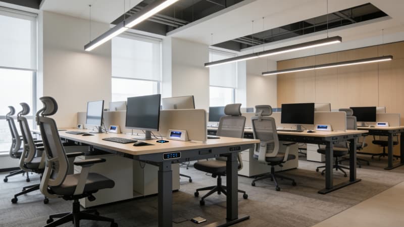 融入智能環境控制系統,自動調節溫濕度與燈光;搭配人體工學家具、中央新風系統,為員工筑牢健康屏障。整體采用現代簡約風格,摒棄冗余裝飾,通過色彩與材質碰撞凸顯企業質感,同時預留品牌文化植入空間。