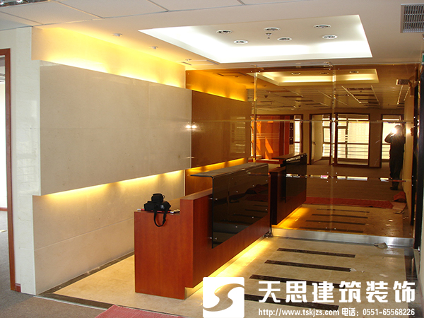 辦公室前臺燈光設計方案:辦公室前臺燈光設計亮度要夠而且一定要有聚焦在logo的字體上,這種整體前臺設計的效果才好。
