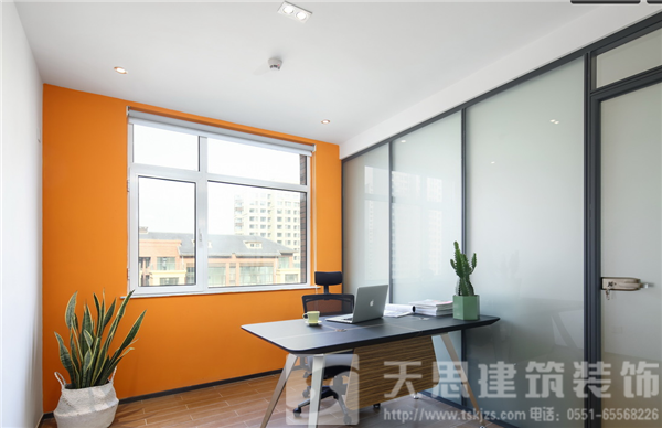 鋼化玻璃、仿木紋瓷磚、布藝窗簾、辦公隔斷
