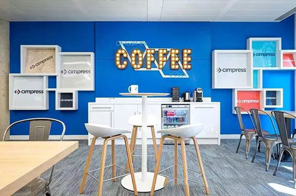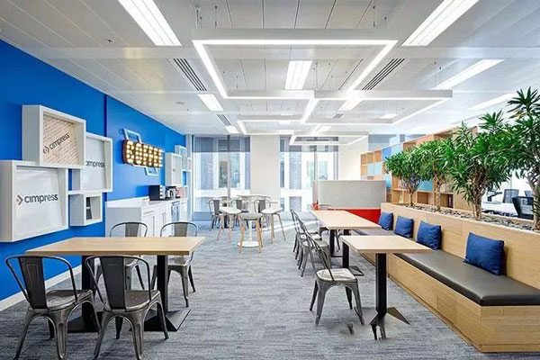 電子商務(wù)的快速崛起給傳統(tǒng)印刷行業(yè)帶來強大的沖擊力。想要在這個行業(yè)站穩(wěn)腳除了品牌宣傳以為,辦公室裝修也是很重要的一部分,良好的辦公環(huán)境不僅能給客戶增加信任感,也可以為招攬更多人才奠定基礎(chǔ)。本案例主導(dǎo)了室內(nèi)的色彩規(guī)劃與圖形創(chuàng)意。大面積炫目的藍色不僅強化了品牌認(rèn)知,還帶來強烈的視覺沖擊。休閑協(xié)作區(qū)配以輕淺的木飾面和充滿活力的綠植,打造愜意舒適的空間氛圍。