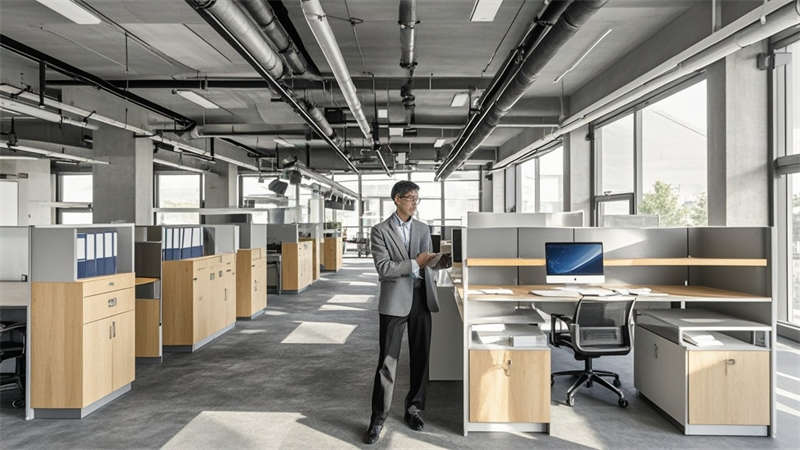 本1500㎡現代簡約辦公室設計以'高效協作·人文關懷'為核心,采用模塊化空間布局提升使用彈性。主色調選用淺灰、白、木三色系,局部點綴企業深藍色強化品牌認知。開放式辦公區采用1.2m×1.8m標準工位模塊,通過玻璃隔斷實現90%自然光滲透率。智能照明系統根據日照強度自動調節色溫,全年節電率達35%。核心筒改造區運用曲面木飾面弱化建筑結構,形成自然交流節點。聲學設計方面,蜂窩吸音板(NRC 0.85)與隔音艙(STC 52)組合控制噪音污染。茶水區采用磁吸軌道插座系統,支持設備靈活接入。所有家具均符合WELL建筑標準,辦公椅配備6向調節功能。通過BIM技術實現管線綜合,保留3.2米凈高營造開闊感。