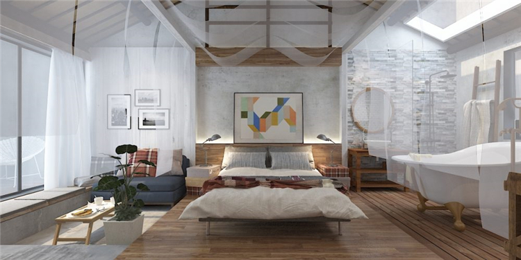 因為民宿般都在環(huán)境比較優(yōu)美的地方,所以客房的設(shè)計中,能配落地窗的房間最好都做成落地窗,房間視野在房價上也有重要的影響。