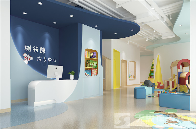 如果早教親子教室空間較小,可以使用冷調的顏色能使房間顯得更大,但也會過于生冷,故可以使用“烘烤”色調,使用飽和度低的暖色調。綠色象征著生命,在裝修時可以配上一些花草樹木等自然元素,讓孩子能更好的親近自然,感受自然。而藍色象征著純潔,采用大海、天空的主題,可以讓孩子的視野更加寬闊,通過海洋、天空來營造一種輕松舒適的感覺,這種色彩下能更好的激發孩子的活躍思維。