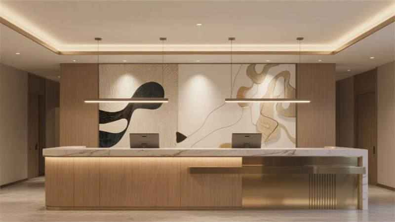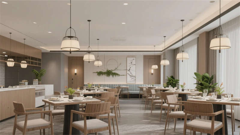 這個酒店設計以現代簡約風格為核心,通過統一的色調和元素,創造出和諧而優雅的空間體驗。大堂作為入口,以淺木色和白色為主調,配以舒適的沙發和綠植,營造出welcoming的氛圍。前臺延續簡約理念,木質柜臺和藝術細節彰顯精致感。餐廳采用開放式布局,木質桌椅和吊燈的點綴,讓用餐時刻充滿輕松與自然氣息。酒吧區則以深色吧臺和暖光照明,提供私密而時尚的社交空間。客房設計注重舒適與隱私,大窗戶引入城市景觀,簡約家具確保寧靜的休憩環境。會議室專業而高效,中性色調和隱藏照明支持專注的商務活動。健身房融入鏡面和綠植,活力十足又不失簡約美感。水療區則強調寧靜,柔和燈光和自然元素促進身心放松。整個項目強調人與環境的連接,每個功能區都服務于寧靜與精致的整體體驗,為賓客打造難忘之旅。
