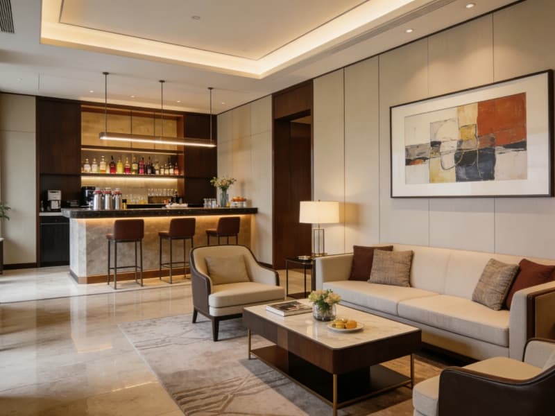 五層為特色配套層,設有行政酒廊、健身房與SPA區。行政酒廊提供專屬服務,健身房配備先進器材,SPA區以自然色調為主,搭配舒緩音樂,讓客人放松身心。