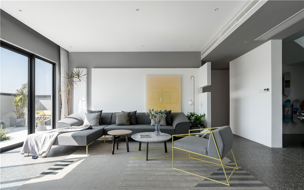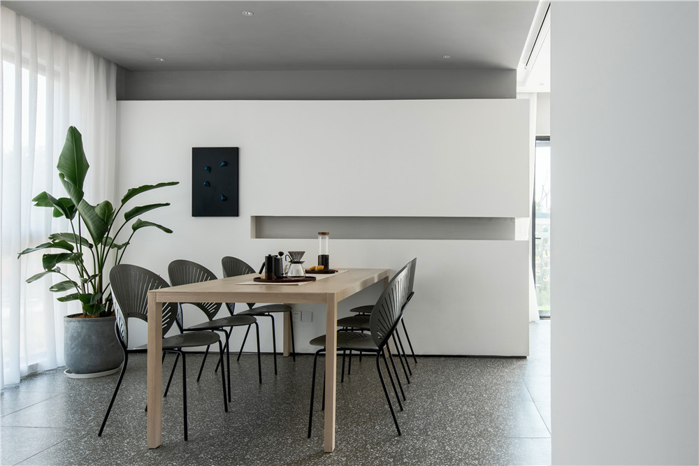設計師一直在思考如何營造空間的秩序、空間的關系、空間的情感,最終打造了一個“無限藝術空間”,整個空間運用簡單的方形,相互疊加、構筑,空間的關系或敞開,或閉合,達到一種無邊界的空間狀態。推掉原有的墻體,又新建新的墻體,用“不完整”的方形劃分空間界限。同時在色彩上,回應對“藝術”的思考,設計師運用了白色,這種無色的顏色,也在述說著空間情感,更純粹,更真實,且沒有邊界,為每一位到訪者留下無限的想象空間。