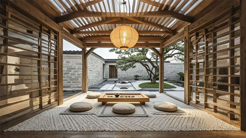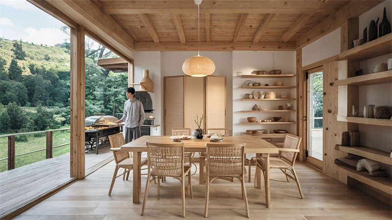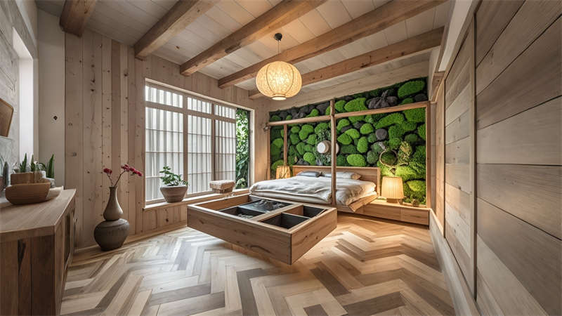 本 1500 平民宿設計以 ' 在地重生 ' 為核心理念,采用現代自然主義手法重構傳統民居。空間規劃上保留原始建筑格局,設置12間主題客房與6大公共功能區。色彩體系以米白、淺灰為基底,點綴墨綠、陶土等大地色系。材料選用夯土、回收老木、亞麻等環保材質,搭配智能化隱蔽工程。