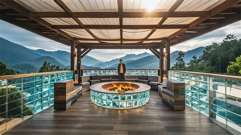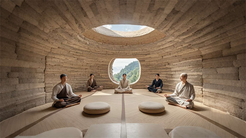 1)夯土墻面內置光纖導光系統,夜間呈現星圖光影;