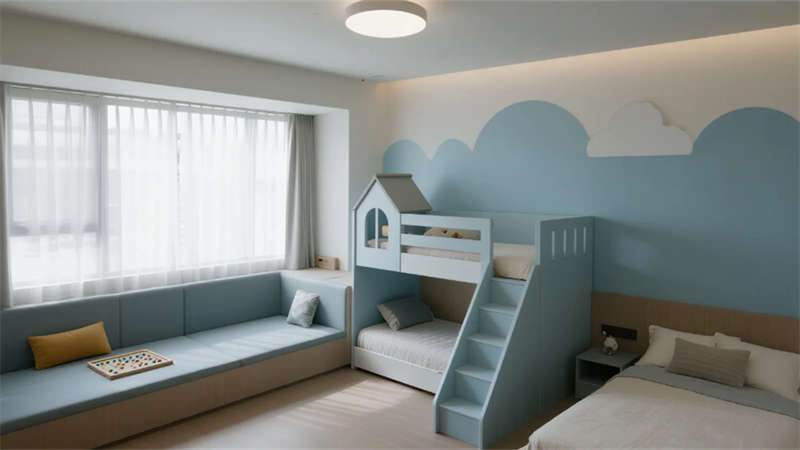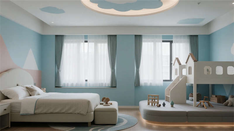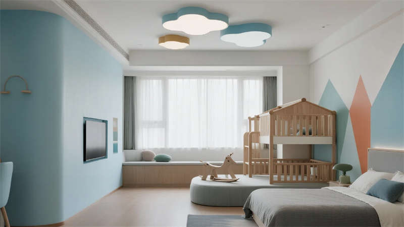 公共區(qū)域強調(diào)功能與美學的平衡:開放式游樂區(qū)釋放孩子天性,閱讀角的樹洞書架激發(fā)想象力,手工坊的彩虹收納系統(tǒng)培養(yǎng)創(chuàng)造力。戶外庭院融入沙坑與綠植,讓自然成為游戲場;夜晚的星空影音室則轉(zhuǎn)為家庭溫馨劇場。整體設(shè)計通過流動的空間布局,讓家長與孩子在簡約美學中共享親密時光,重新定義合肥親子度假的體驗方式。