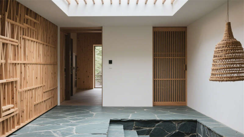 私密客房延續整體風格,床具與家具均選用簡約線條的原木款式,搭配淺灰色床品與局部的自然織物,營造出松弛的休憩環境。細節處,墻面裝飾以天然石材切片與手工陶藝,地面鋪設防滑耐磨的原木紋地板,既保證實用功能,又強化了自然質感。整個設計沒有多余的繁復裝飾,而是通過材質的碰撞、光影的變化與色彩的協調,讓每一處空間都傳遞出 “歸于本真” 的居住理念,為入住者提供遠離喧囂、親近自然的休憩體驗。