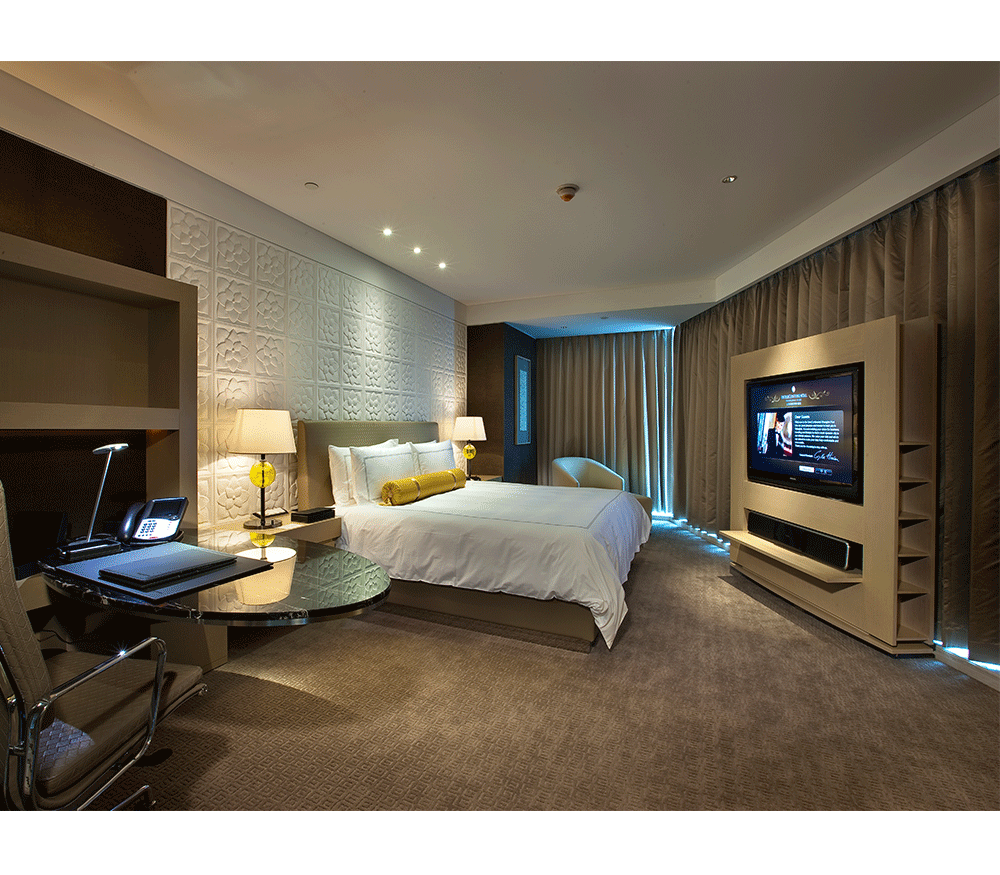 今天給大家分享是一個大型的酒店裝修設(shè)計案例,該酒店擁有 533 間豪華客房和套房,秉承酒店一貫的設(shè)計理念——簡約奢華.其中包括 25 間行政套房、 3 間復式套房、 1 間洲際套房及 2 間總統(tǒng)套房.此外,獨棟的行政樓內(nèi)設(shè)有豪華寬敞的俱樂部酒廊,配套設(shè)施一應俱全.