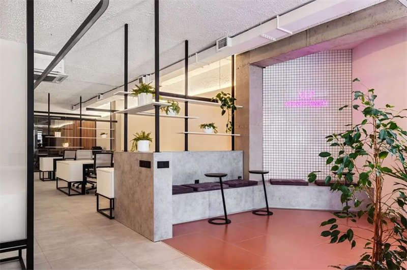 為了最大限度的獲得自然采光和開放的空間感,設計師采用輕型框架結構取代傳統的隔墻。帶有劇場階梯座形式的公共廚房位于窗口近旁,因此,所以員工都可來此享受陽光美景。