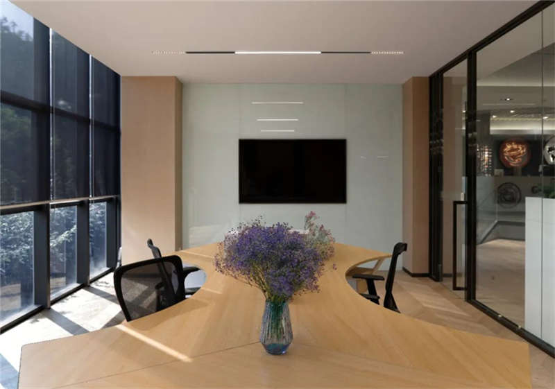 在空間氛圍的打造上,摒棄貴重的材料的堆砌,追求自然、淳樸、環保,注重空間美學及辦公環境的人文關懷。在材質和色彩的應用上也是極力營造輕松、健康、愉悅的工作環境。身處其中工作不再只是緊張的狀態,它是嚴謹的,也是輕松愉悅的,浪漫的......