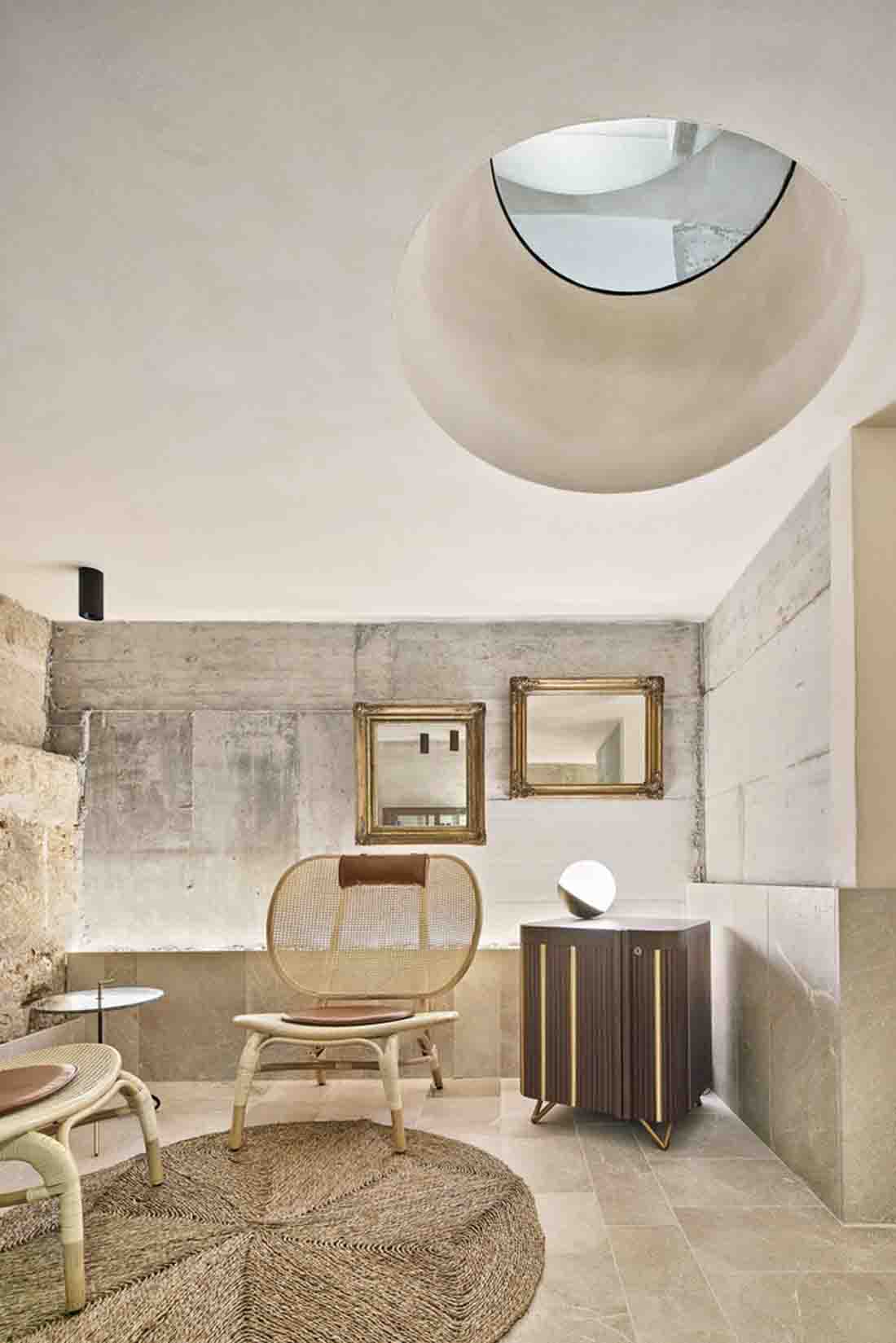設計師旨在喚起比酒店更多的參觀房屋的經歷。因此,客戶不是在酒店接待處而是在房子的門廳見面;找到的餐廳而不是餐廳,而是找到了居民用餐室,這些房間和客廳就像您在老房子中找到的那樣。該項目精心保留了建筑物中浪漫的氛圍,并與不同時期的干預和元素進行了有意識的對比。這是對現有百年建筑雜交的尊重,它保留了過去的痕跡,并避免了房屋從未擁有過的輝煌過去的錯誤恢復。