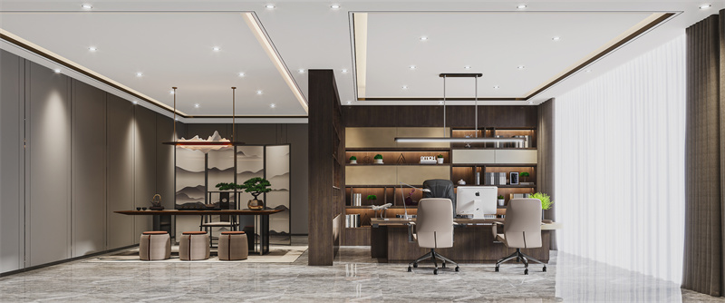 第二、成組式辦公室裝修設計,這種辦公室一般適用于一二十人的中等辦公室。除了有服務用房外成組式辦公室還具有相對獨立的辦公功能。通常辦公室內部空間分隔為接待會客室、高管會議室由于成組式辦公室充分利用了大樓的各項公共服務設施又具有相對獨立、分隔開的辦公功能因此成組式辦公室是企業、單位出租辦公用房的上佳選擇這也是近年來最受歡迎的一種辦公室裝修模式。