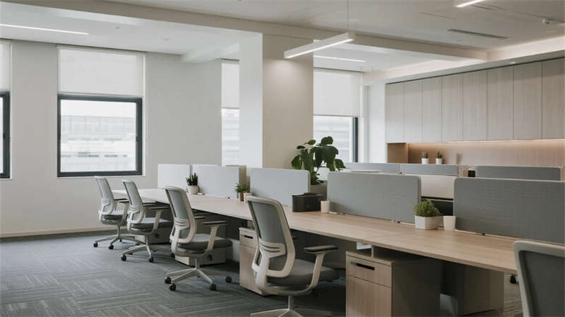 在現(xiàn)代簡約風格的引領下,該辦公空間以開放性和人文關懷為核心,打造了一個流暢而高效的日常工作環(huán)境。整體設計強調視覺統(tǒng)一性,通過淺色調的墻面與地板、簡潔的家具線條以及自然元素的融入,營造出寧靜而專業(yè)的氛圍。功能區(qū)之間無縫銜接,例如協(xié)作區(qū)與開放式辦公區(qū)通過綠植和智能燈光形成自然過渡,確保團隊互動的同時兼顧個人專注需求。休息茶水區(qū)則以溫馨的布局促進員工放松,而創(chuàng)意工坊區(qū)則激發(fā)創(chuàng)新思維,多功能活動區(qū)則支持多樣化的工作模式。
