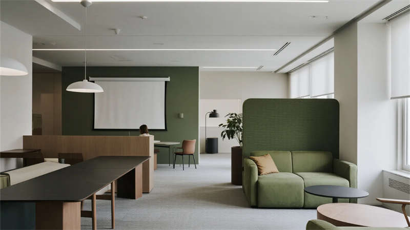 設計中注重舒適與可持續(xù)性,大量運用自然光和綠植,不僅提升空間活力,還呼應了生態(tài)友好的理念。智能照明系統(tǒng)根據(jù)不同時段調節(jié)亮度,強化了現(xiàn)代感。整體空間布局靈活,避免了僵化分區(qū),使辦公體驗更具人性化。該方案旨在為使用者提供一個激發(fā)創(chuàng)造力、促進協(xié)作的理想場所,每一處細節(jié)都體現(xiàn)了簡約而不簡單的美學追求,讓日常工作充滿活力與歸屬感。