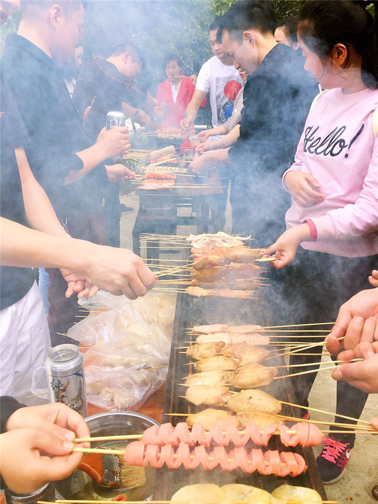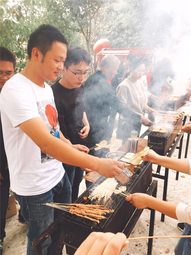 10月21日,大家準時到達目的地。領導與員工穿插入座, 拿材料、搬爐子、生火……看著熊熊的炭火燃燒著,整個現(xiàn)場頓時沸騰起來。活動期間,大家興致勃勃地互相交流,增進了相互之間的了解與認識,促進了部門與部門間的合作精神,拉近彼此的距離。