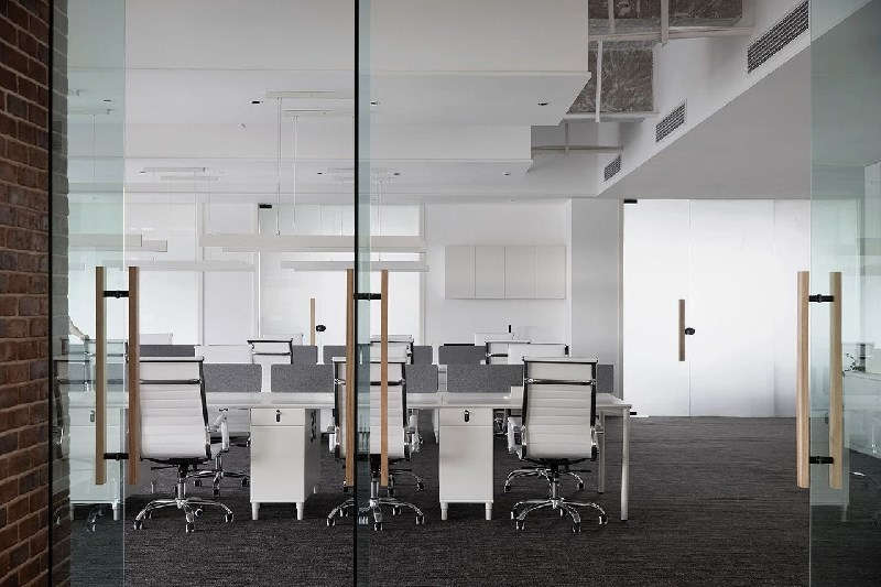 聯排落地窗滿足了最大程度的采光,玻璃隔斷更強化了室內通透,營造高潔、敞亮的良好溝通環境。其材質,不僅易打理,還能有效達到靜音功能,確保工作時的私密性。簡約基底之上,加入現代美式的輕復古格調,豐富質感。在公區大面積鋪設地毯,能為辦公時減少更多噪音。適當地綠植與裝飾元素可以打破事務所固有的沉寂,從感官切入,化解一直以來人們對其產生的刻板影響。當行業面臨新生血液的迭代更替,思想與審美也將在無形中完成進階。