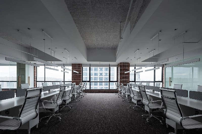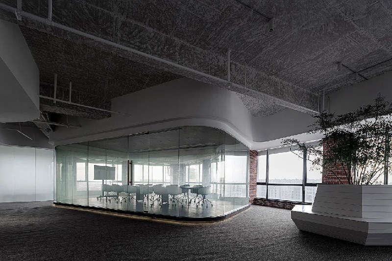 不同于以往辦公一味追求的對稱藝術,經由橫平豎直的線條勾勒,本案布局在硬朗的輪廓下規整有序,又與弧形彎道相輔相成,運用圓角規避各處尖銳轉折,柔和視覺。