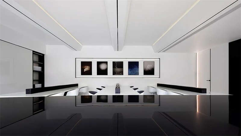 建筑是凝固的音樂,音樂是流動的建筑。二、三層分別是開敞式辦公和高管辦公區(qū),空間整體黑白分明、線條硬朗,像是鋼琴的黑白鍵,揮灑自如,動人的旋律,或悠揚或激昂。