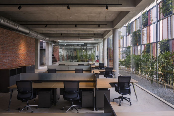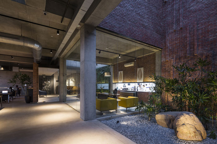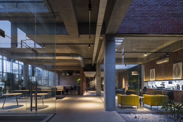 本次為工廠辦公大樓辦公室裝修設計效果圖,辦公室設計面積4000平方,設計師在辦公室設計中,以現場環境保持一致為前提,目的就是打造一個融合與廠房的辦公樓,而不是一個獨立的裝飾。