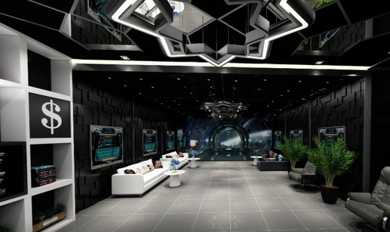 俗話說,氣氛不能輸,一個氣場極強的電競會館絕對可以讓玩家、選手釋放個人最大戰(zhàn)斗力,分泌更多的腎上腺素進(jìn)入暴走狀態(tài)。本次案例整體設(shè)計上走的是現(xiàn)代前衛(wèi)風(fēng),以黑色為主色調(diào)猩紅色為輔,搭配空間感十足的燈光和炫酷的裝飾元素,緊緊扣合“紅蜘蛛”的品牌主題,同時非常凸顯時尚特色,符合消費群體定位。