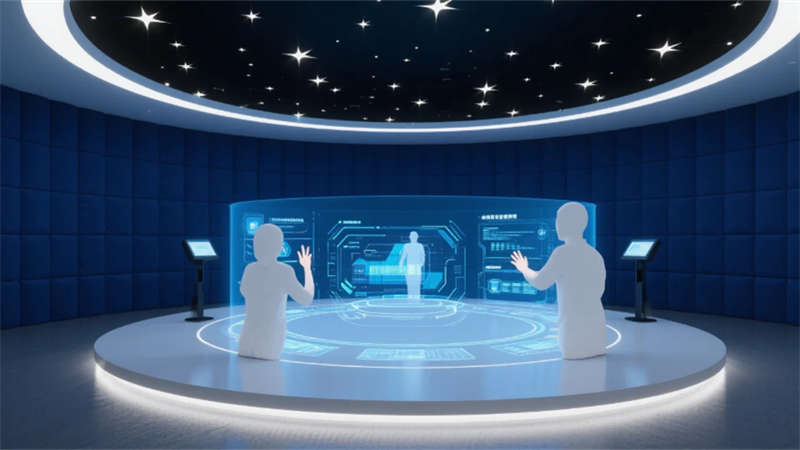 該電子廠展廳以現代科技工業風為核心,打造一場沉浸式探索之旅。整體設計采用冷色調與金屬元素,營造簡約而未來的氛圍,各功能區通過流暢的動線連接,確保參觀體驗無縫銜接。入口接待區以弧形數字屏迎接訪客,引領至產品展示區,這里以互動觸摸屏呈現電子產品的精致細節。技術演示區借助全息投影,讓觀眾親身操作虛擬界面,感受技術魅力。歷史發展區通過時光隧道形式,娓娓道來行業演進故事,而創新研發區則以透明實驗室場景,激發對前沿探索的好奇。生產流程區生動模擬裝配過程,互動體驗區則提供VR游戲等趣味參與,最后在未來展望區,全息投影勾勒智能生活愿景。整個空間強調人與科技的對話,LED燈光與簡約線條貫穿始終,體現創新精神與實用性,為合肥這座科技之城增添一處靈感空間。