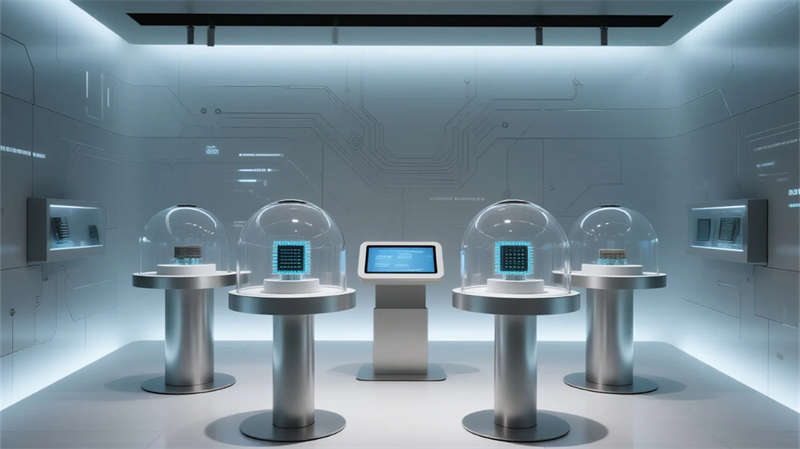 該半導體企業展廳以現代簡約風格為核心,通過流暢空間布局與高科技元素,打造沉浸式科技體驗。設計突出半導體技術的抽象表達,利用藍色與灰色調營造冷靜、專業的氛圍,同時融入玻璃、金屬材質增強通透感。入口區以懸浮雕塑引導視線,產品展示區通過簡約玻璃柜和觸屏互動,生動呈現技術精髓;技術創新墻以動態圖文展現工藝演進,歷史廊道則以線性敘事喚起行業記憶。互動區和未來展望區強調參與性,采用環形屏幕與全息投影,讓訪客直觀感受創新應用。休息區與演講區注重人性化,簡約家具結合微光紋理,提供舒適交流空間。整體設計摒棄繁復裝飾,以干凈線條和光影變化強化空間流動性,不僅傳遞半導體領域的精密與前瞻性,更通過美學融合提升教育性和觀賞性。展廳作為科技展示平臺,旨在激發探索興趣,體現企業對創新文化的重視。